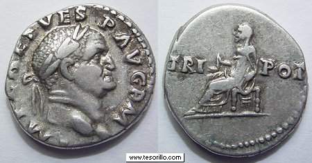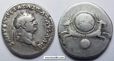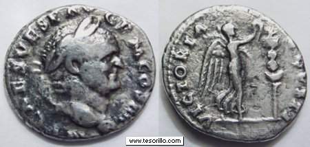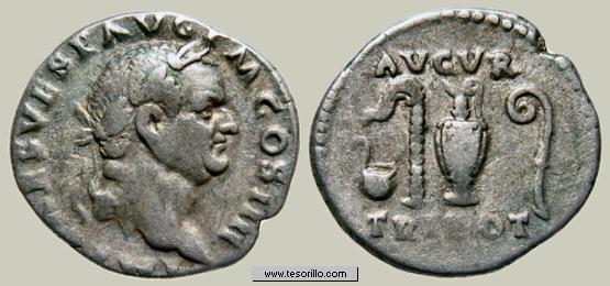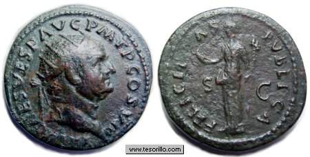 monedas oficiales de Vespasiano, el parecido del busto con su antecesor Vitelio, resulta notable.