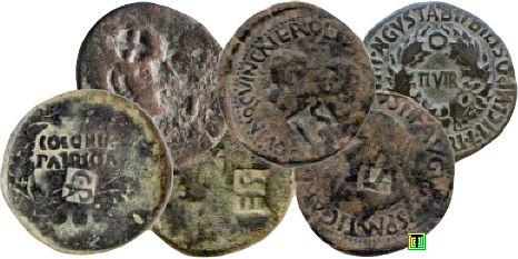 Diversas contramarcas interpretadas como las letras AL anexadas, presentes en ases de Augusto