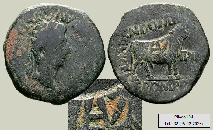 reverso de algunos ases de Tiberio emitidos en Italica y Segobriga.