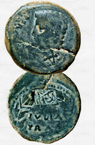 Tiberio, emitidos en Turiaso, fueron posteriormente contramarcados con este monograma