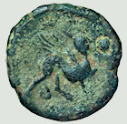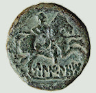García-Bellido (1999: 57) nos indica que no ha sido encontrada ni una sola moneda contramarcada con la abundante cabeza de águila en las excavaciones de los campamentos romanos de Germania, y sin embargo sí que se encontraron monedas acuñadas en Hispania en trece de dichos campamentos. Ver mapa del "Diccionario de Cecas" de esta misma autora (2001: 174). Esto parece indicar que la circulación de las monedas contramarcadas hispánicas era un fenómeno muy local. Veamos algunos ejemplos de contramarcas hispanas sobre monedas foráneas: dos bronces cartagineses acuñados en Cerdeña o Carthago acuñado en Cerdeña y seguramente contramarcado en Hispania, un as de Tingi con la contramarca gaditana COL, dos ases de Lugdunum: uno con la contramarca CAS de Cascantum y otro con cabeza de águila, un as de Nemausus también con cabeza de águila, otro as de Nemausus con la contramarca "dD" y el interesante ejemplar de Caesarea que figura a la izquierda. (Ver artículo: Una moneda singular: AE norteafricano contramarcado con la "cabeza de águila" de la Tarraconense). Todas estas monedas debieron haber circulado por la península ibérica, puesto que presentan contramarcas hispánicas. Ejemplos de contramarcas foráneas sobre monedas hispánicas son: los ases de Calagurris y Caesaraugusta, contramarcados en las Galias con SPQ y SPQR respectivamente (ver página 103 del artículo: "Contramarcas de CALAGVRRIS IVLIA NASSICA"), el semis de Caesaraugusta contramarcado en Germania Inferior con IMP (ver: García-Bellido, 2004: 127, nº 18). Ver denarios de Colonia Patricia 1 - 2 - 3 - 4 - 5, Tarraco 1 - 2 y Emerita. Otros ejemplos son: el as de Turiaso, la dracma de Emporion y los ases de: Gadir 1 - 2 - 3 - 4 con las contramarcas SITT (?) y TTGN (?) que han sido interpretadas como propias de la ciudad norteafricana de Cirta (?), además del semis de Ebusus mostrado a la derecha con una contramarca del tipo cabeza de Atenea (?) que debe de ser extrapeninsular. |