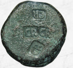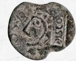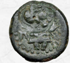 - Existen monedas de Abdera con un signo X en forma de aspa (RPC 10), similar a la letra ibérica ta, dentro de una depresión cuadrada con puntos a los lados que se asocia a la Legio X y probablemente sirvió para revalidar las piezas en época de Claudio. En el anverso de una moneda de Abdera aparecen las letras ibéricas ta ka punzonadas (APRH 168). Las letras COER, que están grabadas en un punzón rectangular sobre una moneda de esta ceca (según un antiguo dibujo publicado por Sestini), han sido explicadas por Guadán como una mala copia de CAESAR. - En monedas tardías de Sexs se documenta la contramarca DD, interpretada generalmente como Decreto Decurionum. - En una rara emisión de Lascuta encontramos un resello descrito como GISCO por García-Bellido (2001: 265) y como DESCOI por G. Cores (2017: 66). Sin embargo, en el ejemplar mostrado a la derecha parece leerse claramente DISCOI. |