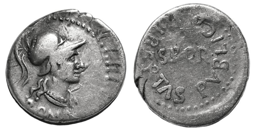 Nuevo denario de las Guerras Civiles A primera vista, nos encontramos con una pieza que podría aparentar pertenecer a
