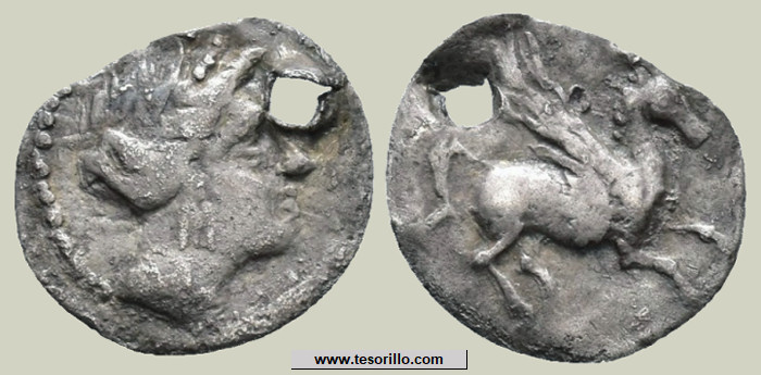 Pequeñas monedas de plata agujereadas Holed coinsA la izquierda tritartemorión