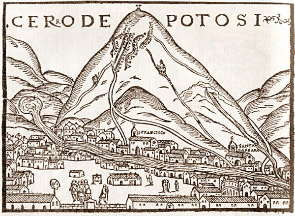 [1].- Llamas acarreando la plata de las minas de Potosí a la costa, con escolta armada, por los antiguos caminos de los incas. Grabado recogido del libro "Americae" de Théodore de Bry's (1602), sección de libros raros de la Biblioteca Pública de New York . [2].- Varón, Rafael. Minería colonial peruana: Un ejemplo de integración al sistema económico mundial. Historia y Cultura. Revista del Museo Nacional de Historia. Lima, 1978. N° 11.