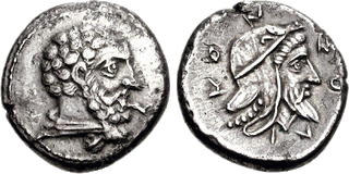 Otros tipos de Datames, similares a las de Pharnabazos, pero con distinta leyenda en arameo: