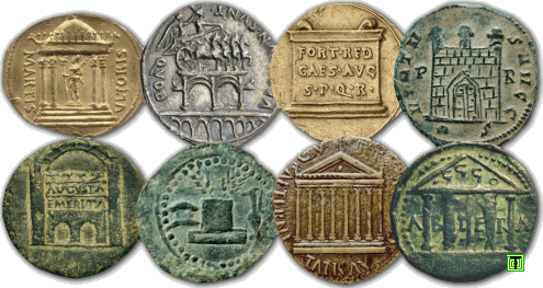 Bibliografía, abreviaturas y "links" Representaciones arquitectónicas en las monedas de Hispania |