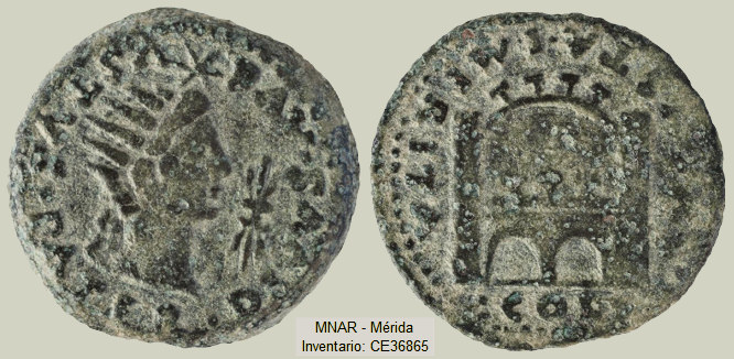 En las monedas de Augusta Emerita podemos ver el alzado frontal de una de las puertas de la ciudad