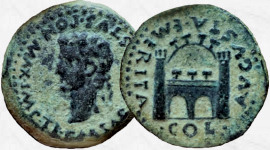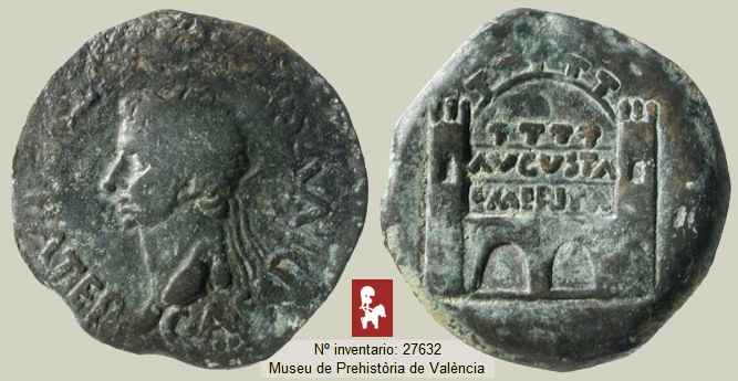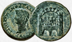monedas provinciales emitidas (siempre en bronce/cobre) en los periodos de Augusto (27 a.C. - 14 d.C.) y Tiberio (14-37 d.C.), respectivamente.