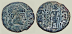 Moneda de bronce acuñada en la segunda mitad del siglo IV, presumiblemente en Hispania, imitando las emisiones de las