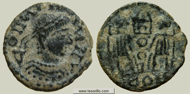 siglo IV, presumiblemente en Hispania, imitando las emisiones de la primera oficina de Arelate.