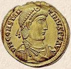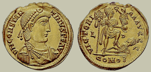 Durante el reinado del débil Honorio, en 407, las mejores unidades militares que quedaban fuera de Italia estaban en Britannia, pero su situación era tan precaria que decidieron elegir su propio emperador, un soldado raso llamado Constantino III. El usurpador pasó todas sus tropas a la Gallia dejando a Britannia completamente inerme. Los britanos tuvieron que defenderse como pudieron de los pictos. Los escotos aprovecharon los disturbios y empezaron a instalarse de forma permanente en el territorio de los pictos. El usurpador Constantino III repelió a la fuerzas de Sarus, el general que Honorio había enviado a su encuentro, logrando establecerse en Arelate y dominar parte de la Gallia. Empujó hacia el sur a suevos, vándalos y alanos, contuvo una invasión de los burgundios, dirigidos por Gundicaro, a los que convirtió en aliados romanos. Constantino III nombró César a su hijo Constante, al cual envió a Hispania para dominar a los pueblos germánicos. Pero uno de sus generales, Geroncio, se sublevó en Tarraco, mató a Constante y nombró en Hispania a un fugaz emperador llamado Máximo. La deslealtad de Geroncio acabó con la aventura de este usurpador, quien fue derrotado en Ravenna por las fuerzas de Honorio comandadas por el futuro emperador Constancio III.