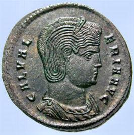 Busto vestido de la emperatriz, con láurea y diadema,
