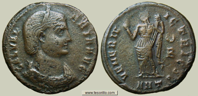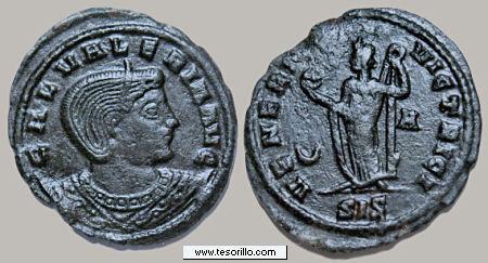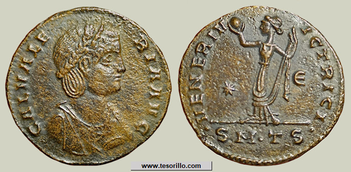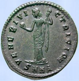 Moneda catalogada en RIC VI 33 solamente para la 1ª oficina (A), mientras