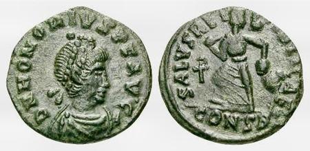 las monedas del emperador Honorio, pero con un peso mucho más reducido.