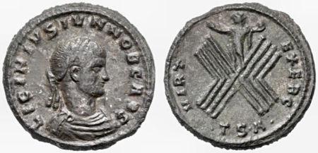 Flavio Valerio Constantino Liciniano Licinio nació entre los años 313 y 315, siendo conocido como Licinio II o Licinio hijo, ya que era hijo del emperador del mismo nombre y de su esposa Constancia, si bien algunos autores apuntan a que su madre era una concubina desconocida. En marzo del año 317 fue firmada una tregua entre los dos emperadores por la posible intervención de Constancia (que era hermana de Constantino I), entonces Licinio designó a su hijo como César, mientras Constantino hacía lo propio con sus hijos mayores (Crispo y Constantino II). Licinio hijo fue educado por el propio Constantino en la corte de Constantinopolis. pero fue víctima tanto de las circunstancias adversas (su padre había sido derrotado en la batalla de Chrysopolis) como de los celos de Fausta (esposa de Constantino), siendo desposeído de su rango de César en 324. Después de la ejecución de su padre, Licinio hijo fue condenado a esclavitud y asesinado algún tiempo más tarde (325-326), a pesar de las súplicas de su madre Constancia a su hermanastro Constantino. Padre e hijo sufrirían Damnatio Memoriae, Licinio en 325 y su hijo en 326. Para entonces Constantino I el Grande ya había reunificado el Imperio, cuarenta años de "Tetrarquía" habían quedado atrás para siempre.