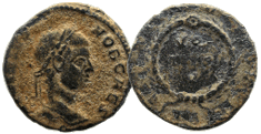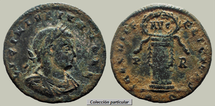 Anverso: D N VAL LICIN LICINIVS NOD C, leyenda con las letras N retrógradas.