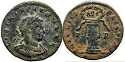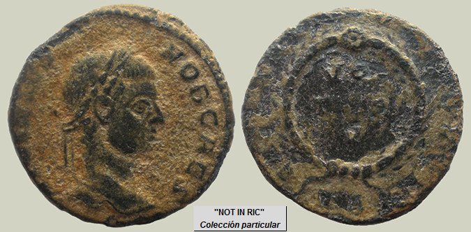 imitado es el PROVIDENTIAE CAESS de Licinio II, descrito en la moneda anterior. |