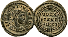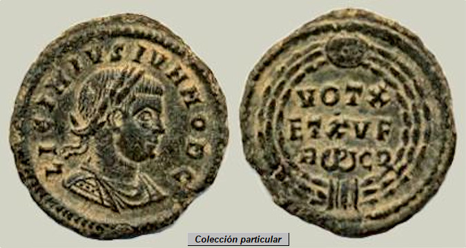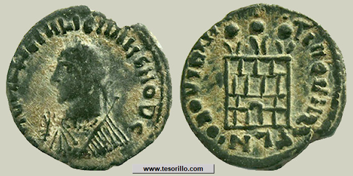Moneda de bronce acuñada a mediados del siglo IV d.C., en Centroeuropa o en