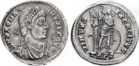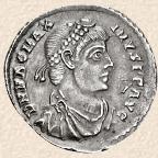 Magno Clemente Máximo nació en Hispania, siendo posiblemente pariente de Teodosio I, lo cierto es que sirvió con su padre (un gran general también llamado Teodosio) y que consiguió alcanzar los más elevados cargos en el ejército romano de Britannia. Aprovechando el descontento de las tropas de dicha Provincia, que se encontraban en estado de abandono, Magno Máximo se rebeló, siendo aclamado como Augusto en julio de 383. Inmediatamente pasó a la Gallia y el emperador Graciano respondió marchando con sus legiones hacia él, pero sus tropas, celosas de los privilegios concedidos a los federados alanos incorporados al ejército, se pasaron al bando insurgente. El emperador fue abandonado por sus propios soldados cerca de Lutetia (actual París). Graciano huyó entonces hacia los Alpes para reunirse con las tropas de Teodosio I, pero fue alcanzado por su enemigos en Lugdunum y murió asesinado en agosto de 383. Magno Máximo se hizo dueño de la práctica totalidad de Occidente (a excepción de Italia, en donde Valentiniano II había sucedido a su hermano Graciano), estableció su corte en Treveri y fue temporalmente reconocido por el emperador de Oriente Teodosio I. En 387 nombró a su hijo Flavio Víctor como Augusto, de esta forma el rebelde general aseguraba la línea sucesoria y trataba de dar legitimidad a su usurpación, pero su ambición le llevó a invadir Italia (387), en donde en principio no encontró oposición, Valentiniano II había huido a refugiarse a la corte de Teodosio I en Constantinopla. Al año siguiente (388) Teodosio I el Grande hizo suya la causa de Valentiniano II y marchó con sus tropas hacia Occidente, logrando derrotar al usurpador en los alrededores de Siscia y haciéndole prisionero. Magno Máximo fue ejecutado en agosto de 388, en Aquileia, siendo condenado a Damnatio Memoriae. El joven Valentiniano II quedó entonces como único emperador de Occidente.