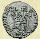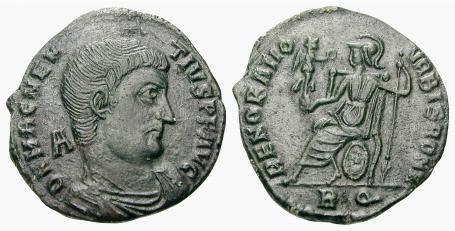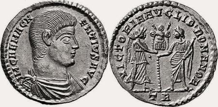 Flavio Magno Magnencio nació hacia el año 303 cerca de Ambianum. A pesar de ser de origen bárbaro, se unió a las legiones romanas y se ganó el aprecio de Constante (el emperador de Occidente), dadas sus buenas cualidades como soldado. Magnencio era comandante de las unidades de élite del ejército Imperial Occidental cuando traicionó al emperador. En enero de 350 se fraguó una conspiración en la que Magnencio fue proclamado Augusto, pronto se dio cuenta Constante de que había perdido el favor del ejército y huyó hacia Hispania, pero fue descubierto en el camino por emisarios de los rebeldes, quienes le dieron muerte. Exceptuando la región de los Balcanes en donde el ejército había proclamado a Vetranio, y decían mantenerse fieles al emperador de Oriente, Constancio II, el usurpador Magnencio se había convertido en el dueño único de Occidente. Magnencio, en su usurpación, consiguió los siguientes títulos [1]: