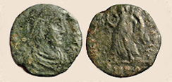 Después de la usurpación en Britannia de Constantino III, Hispania tuvo que tomar la decisión de apoyar al insurgente o seguir leal a Roma. El usurpador Constantino III logró dominar parte de la Gallia, empujó hacia el sur a suevos, vándalos y alanos y nombró César a su hijo Constante, al cual envió a Hispania para dominar a los bárbaros. En el año 409, los bárbaros que habían cruzado las fronteras del Imperio se habían asentado en Hispania: los suevos ocuparon el norte de la península, en el centro se asentaron los alanos y la parte sur quedó bajo dominio vándalo. La parte nororiental de Hispania estaba bajo el control de Constante, pero Geroncio, uno de sus generales de origen bárbaro, se sublevó en Tarraco y nombró emperador a Máximo, un oscuro personaje que podría ser su propio hijo o posiblemente uno de sus sirvientes. Después de capturar y dar muerte a Constante, Geroncio marchó sobre la Gallia dejando a Máximo en Hispania, pero las fuerzas de Constancio, el nuevo magister militum de Honorio, eran mucho más numerosas y fue derrotado en Arelate (411). Máximo huyó y desde entonces poco se sabe de él, se cree que fue perdonado por el emperador de Occidente Honorio, pero que intentó de nuevo usurpar el poder con la llegada de los visigodos a Hispania y en 422 fue capturado y ejecutado en Ravenna. Las escasas monedas de Máximo constituyen las primeras acuñaciones en Hispania después de un largo periodo sin acuñar moneda (desde tiempos de las Guerras Civiles de 68-69 d.C.), y a la vez serían las últimas monedas romanas de la Península, así como las únicas acuñaciones romanas efectuadas en la ceca de Barcino.
