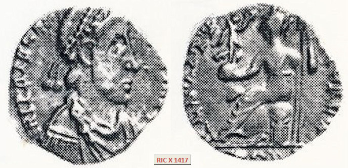 NB en el campo, del que actualmente se desconoce su paradero. (Ver Cohen VIII 206:8 y RIC X 1416).