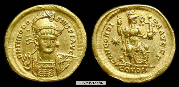 probable es que esta moneda fuera acuñada en Constantinopolis, pero al ser el
