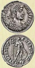 Flavio Valentiniano nació el año 321 en Cibalae (Pannonia). Descendiente de una familia de militares, pronto se hizo él también militar, llegando a ser general de la Guardia Imperial de Juliano II. El emperador Joviano murió repentinamente en febrero de 364, y las tropas aclamaron como nuevo Augusto a Valentiniano en Nicaea (Bithynia et Pontus). Al contrario de su predecesor, Valentiniano I era hombre muy capacitado y en pocos días asoció al mando a su hermano Valente, confiándole el gobierno de las provincias Orientales, para -firmada la paz en Oriente con los persas- poderse dedicar él personalmente a defender las fronteras centrales del Imperio (Rin y Danubio) de las invasiones bárbaras. En 367 elevó al rango de Augusto a su hijo Graciano que por entonces era un niño de pocos años. Valentiniano gobernó más de una década, alcanzando los siguientes títulos [1] :