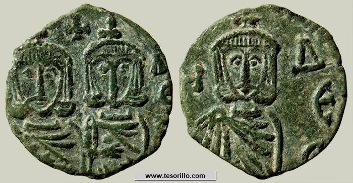 Justiniano y el propio Heraclio, fueron contramarcadas de esta singular forma en Sicilia.