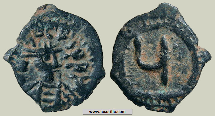 Moneda de bronce de 13-16 mm y 1,3 g acuñada entre los años