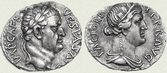 Un factor que debemos tener muy en cuenta para la autentificación de un denario, es el posible hallazgo de monedas del mismo cuño que la nuestra. Dado que resulta evidente que los cuños utilizados para la fabricación de monedas no eran utilizados una única vez, sino que tenían una duración tal que les permitía acuñar varios miles de piezas antes de romperse o deteriorarse, resulta lógico pensar que es probable que otras monedas que se encuentran en el mercado compartan cuño con la que nosotros poseemos. Llegados a este punto, no está de más recordar que la acuñación solía llevarse a cabo situando uno de los dos cuños, casi siempre el de anverso, como cuño fijo situado sobre la superficie de trabajo y el otro cuño, normalmente el de reverso, era móvil y sujetado por el acuñador en el momento en el que el "malleator" descargaba el golpe de martillo. Este hecho, que un cuño fuese móvil y otro fijo, unido a que la durabilidad de ambos cuños era distinta, nos puede dar una idea de que será más probable encontrar monedas en las que coincida solo uno de los cuños, a otras en las que sean los dos cuños los coincidentes. Además, será más frecuente que ese cuño coincidente sea el de anverso, dado que durante el proceso de acuñación era el cuño de reverso el que recibía el golpe del martillo, sufría mucho más desgaste y por lo tanto debía ser sustituido con mayor frecuencia. Reparemos también en que el hecho de que una moneda presente el mismo cuño que la nuestra no significa en absoluto que sea idéntica. De hecho, deberá ser completamente distinta en cuanto a sus características propias tales como tamaño del flan, forma, centrado, grietas, rozaduras o posibles depósitos o concreciones. Lo que realmente implica que hayan sido acuñadas con un cuño idéntico es que el motivo (retratos, figuras, letras o grafilas) será exactamente igual en ambas, y deberemos compararlas para estar seguros de su exacta coincidencia. No nos ofrece garantías de autenticidad inmediata, ya que el cuño original bien podría ser falso; tampoco nos asegura en el acto que nuestra moneda no sea un clon obtenido por micro-fusión a partir de una tercera pieza que comparta cuño, pero nos proporciona una pista muy importante a la que seguir el rastro: si conseguimos información acerca de la pieza que comparte cuño con la nuestra y su pedigrí nos parece fiable, podremos concluir que nuestra moneda proviene de un cuño auténtico, y llegados a este punto solo será necesario descartar que nuestra moneda sea fundida para poder garantizar de inmediato que es legítima. Con la búsqueda de ejemplares del mismo cuño, que se ha de llevar a cabo siempre y de modo sistemático en todas nuestras piezas, obtendremos un sumatorio de pedigrís, ya que cada ejemplar que localicemos sumará sus garantías a los ya encontrados. Dado que este punto puede resultar de difícil comprensión, ilustremos lo que estamos diciendo con el denario de Vespasiano usado en el ejemplo anterior (fotografía superior) y comparémoslo con otros dos denarios de idénticos cuños de anverso (imagen media e inferior):
