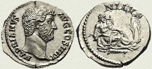 Veamos ahora un ejemplo de dos monedas raras de Adriano que fueron subastadas juntas por CNG , y en las que coinciden tanto los cuños de anverso como de reverso.