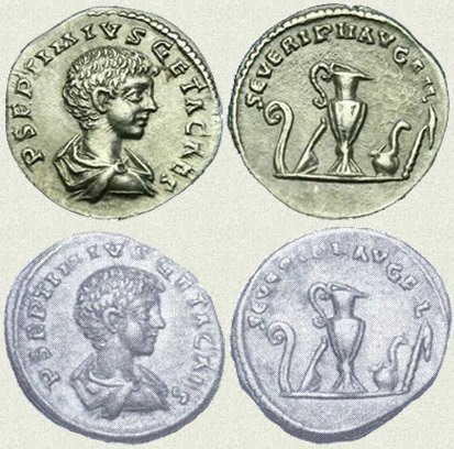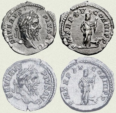 Tengámoslo presente; la búsqueda de cuños coincidentes debe llevarse a cabo siempre, incluso cuando hojeemos catálogos antiguos o libros de reconocido prestigio, en todo momento hemos de estar atentos, pues en cualquier momento podemos hallar alguna coincidencia en los cuños. Si uno presta la debida atención, el hallazgo se produce con una cierta frecuencia, y puede resultar muy gratificante; valga de ejemplo la coincidencia de dos de nuestros denarios con los ilustrados en el volumen II del "Roman Coins and Their Values" de David R. Sear y que mostramos a continuación: