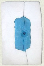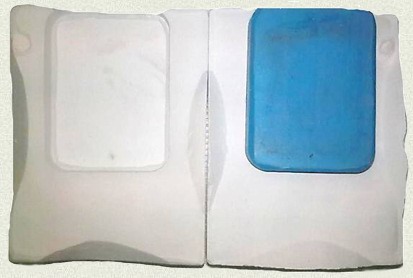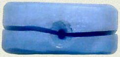 Imagen 3.3. Al mismo molde anterior, se le ha practicado una abertura por donde poder inyectar la cera. El objetivo de dicho canal, es el de permitirnos verter o inyectar cera derretida en el interior del molde, de forma que podamos conseguir una "moneda" de cera. Este es el resultado: