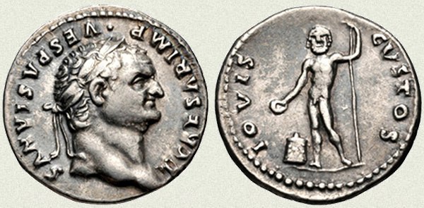 Imagen 13.2. Denario auténtico de Tito con pátina oscura. Colección GS.