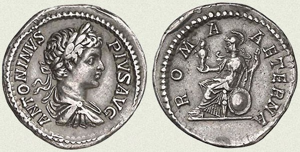 En numismática solemos hablar de pátinas para referirnos al grado de coloración o tono que, con el tiempo, adquieren las monedas antiguas. La adquisición de esa pátina por parte de las monedas depende tanto del tiempo que ha transcurrido desde su acuñación, como de las condiciones ambientales a las que se han visto sometidas. Para nuestro propósito, que no es otro que la autentificación de un denario, su interés es relativo, pero debe ser tenido en cuenta ya que si bien cualquier moneda falsa con unos pocos años de antigüedad puede adquirirlas, determinadas pátinas resultan muy difíciles de ver en falsificaciones. Las tonos de las monedas auténticas pueden ser muy variables, sin embargo los más frecuentes en los denarios son los oscuros (por el típico oscurecimiento de la plata), los iridiscentes, y más raramente los marrones. En nuestra experiencia, cualquier tono o pátina que aparezca en una moneda que estemos autentificando, debe ser vista como un signo de autenticidad, muy relativo es cierto, pero aun así debe contemplarse como positivo, ya que como mínimo nos sitúa la posible falsificación con unos años de antigüedad, y nos descarta muchas copias recientes que no hayan tenido tiempo de envejecer. La pátina más común es oscura y gris uniforme, y como decíamos, también es la menos fiable. Veámosla en los siguientes ejemplos, donde la lucen dos monedas auténticas de Octavio y Tito, pero también en una tercera falsa de Caracalla.
