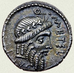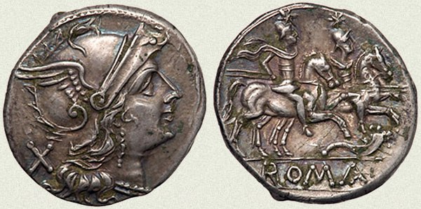 Imagen 13.6. Denario republicano anónimo con pátina oscura y reflejos iridiscentes.