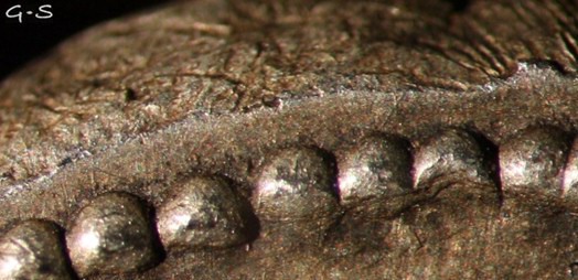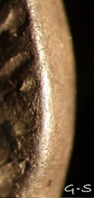 Dentro del estudio del canto de la moneda, que trataremos en profundidad en el capítulo siguiente, vamos a establecer una diferenciación entre el canto propiamente dicho y el borde, entendiendo como tal la transición entre el campo de la moneda y su canto. Por si solo, el borde es capaz en muchas ocasiones de poner de manifiesto la falsedad de una determinada moneda y por lo tanto deberemos conocer cuál es el aspecto que suelen presentar los bordes de las monedas falsas, para poder identificarlos en cuanto los veamos. Hay tres signos principales a tener en cuenta para detectar los denarios falsos: