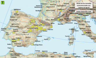 Cecas de las monedas contramarcadas con "cabeza de águila" |