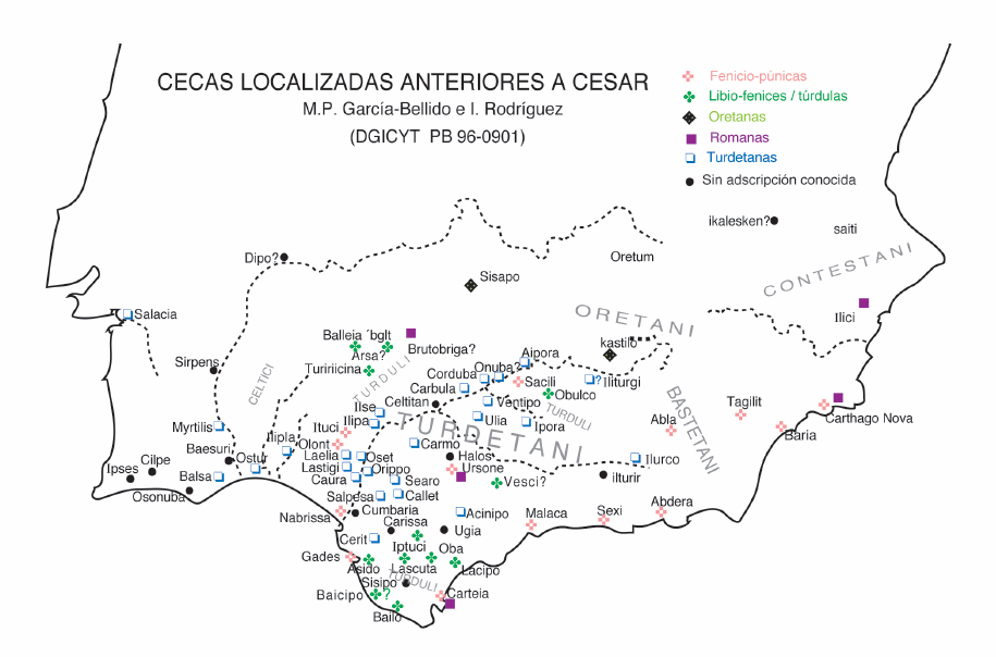 Mapas del "Diccionario de Cecas y Pueblos Hispánicos" de Mª Paz García-Bellido y Cruces Blázquez,