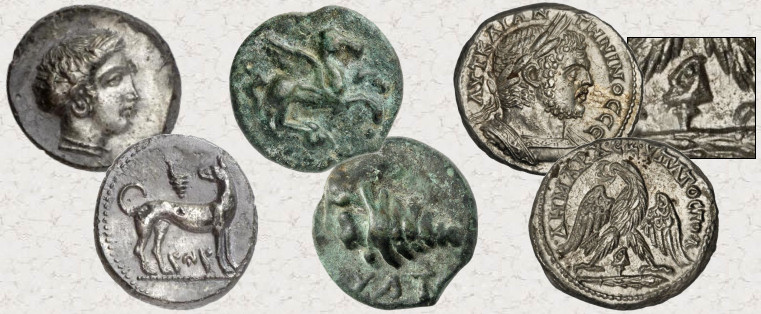 Las monedas que muestran animales son siempre apreciadas por el coleccionista y desde luego la numismática antigua es pródiga en este tipo de representaciones. Por ahora he encontrado 126 animales distintos. Seguramente habrá más, por lo que cualquier idea siempre será bienvenida (e-mail). Para buscar algún animal concreto lo recomendado es ir a los índices alfabéticos: A - G y H - Z, en los que además se indica la procedencia y el link correspondiente de cada moneda.