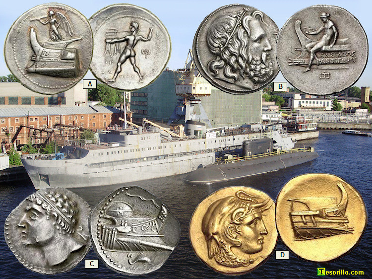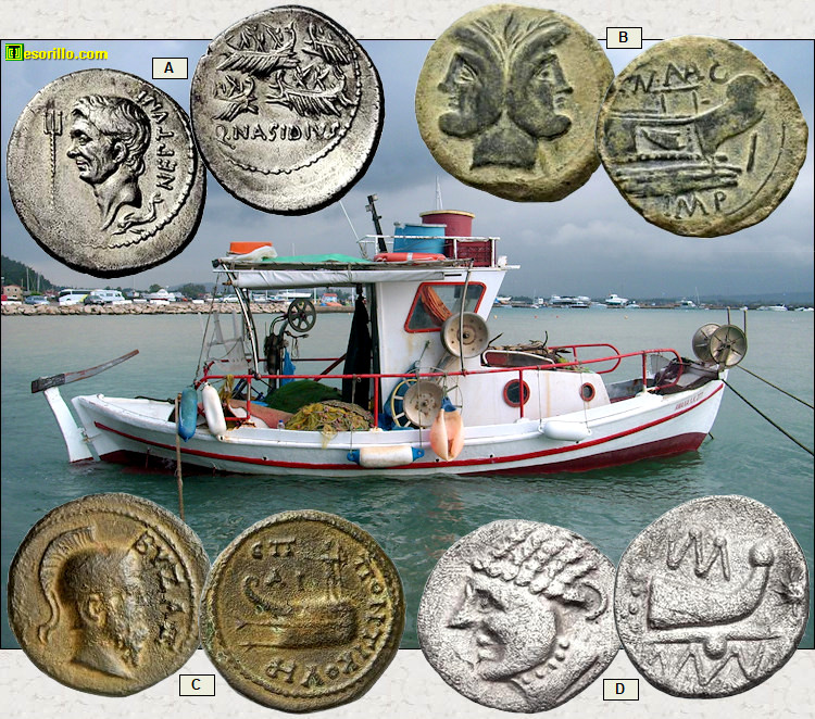 A continuación veremos otras elegidas monedas que nos muestran embarcaciones del Mundo Antiguo.