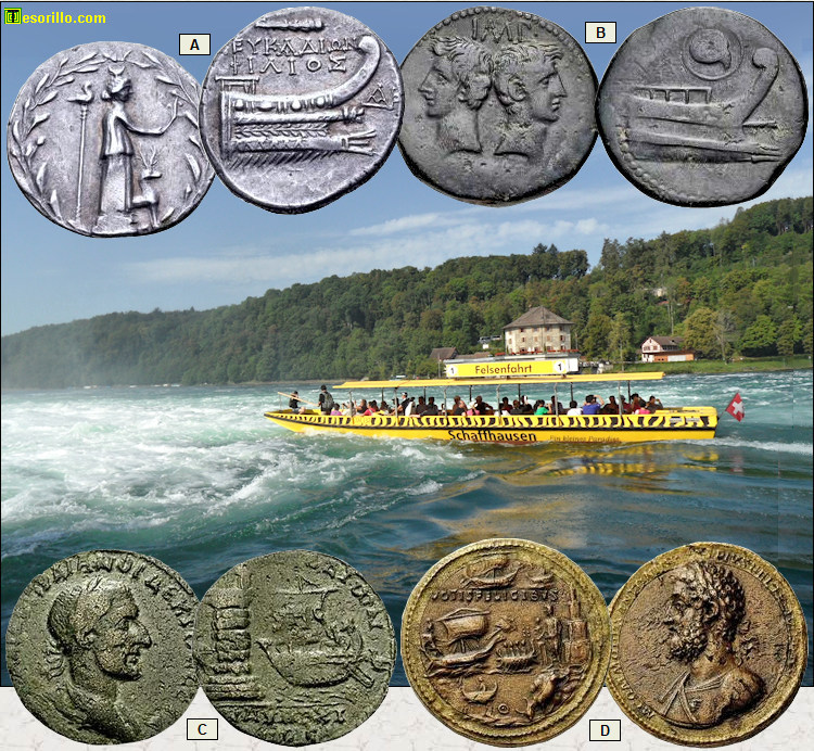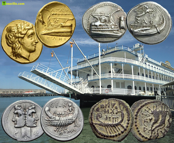 monedas antiguas mostraban galeras o proas de naves como una forma