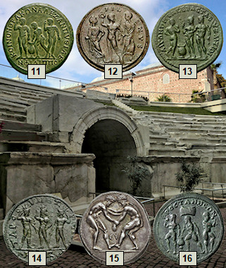 B.- Dos atletas luchando: Bronce provincial de Heliogábalo (Philippopolis, Thracia, 218-222 d.C.) |