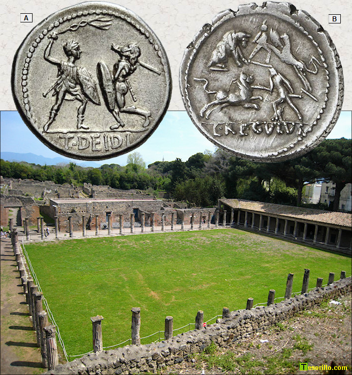 A.- Lucha de gladiadores: Denario republicano de la gens Didia (Roma, 113-112 a.C.)