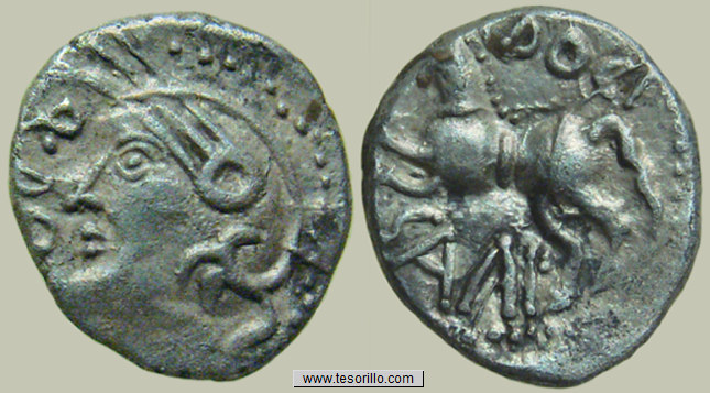 Moneda de 20 mm y 3,6 g acuñada por las tribus celtas llamadas