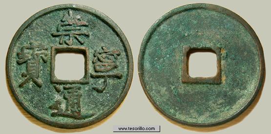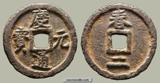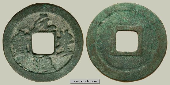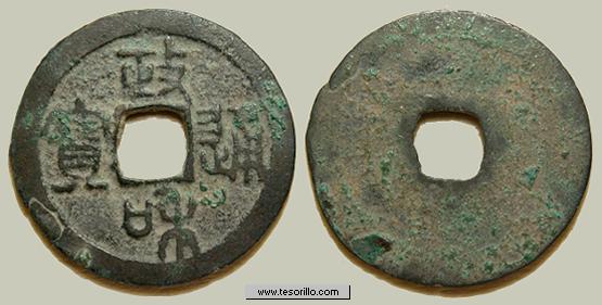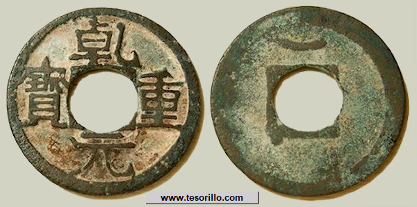 Anverso: leyenda en chino Qian Yuan Zhong Bao.