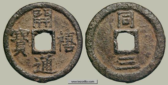 Anverso: leyenda en chino Kai Hsi Tung Pao.