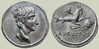 Busto desnudo del emperador mirando hacia la derecha. Letra A a la izquierda del campo.